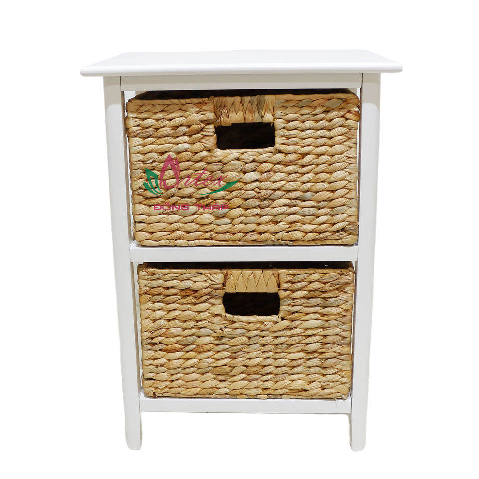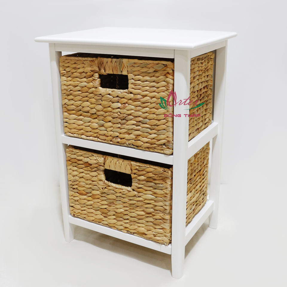 Artex Dong Thap Factory Wholesale Top Trending 3 Drawer Wood Side Table With Hyacinth Basket Drawer Storage Handicraft