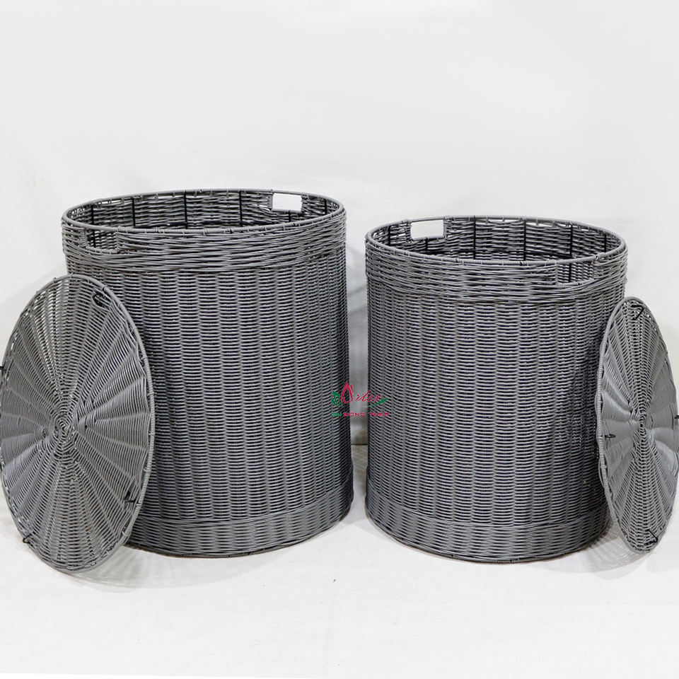 Artex Dong Thap Factory's Foldable Woven Plastic Rope Laundry Basket with Lid and Handles for Kids & Home Storage
