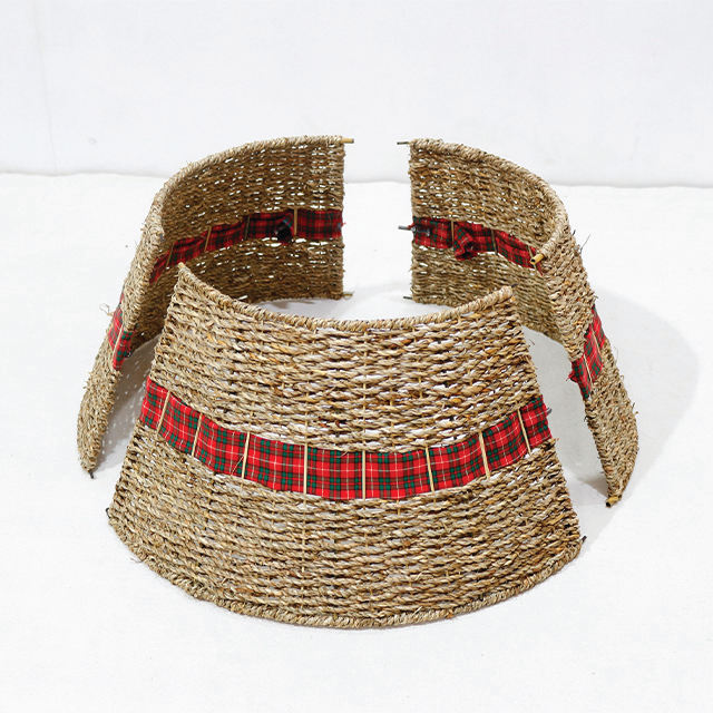 Artex Dong Thap Handmade Eco-Friendly High Quality Woven Water Hyacinth Christmas Tree Collar with Red Trim