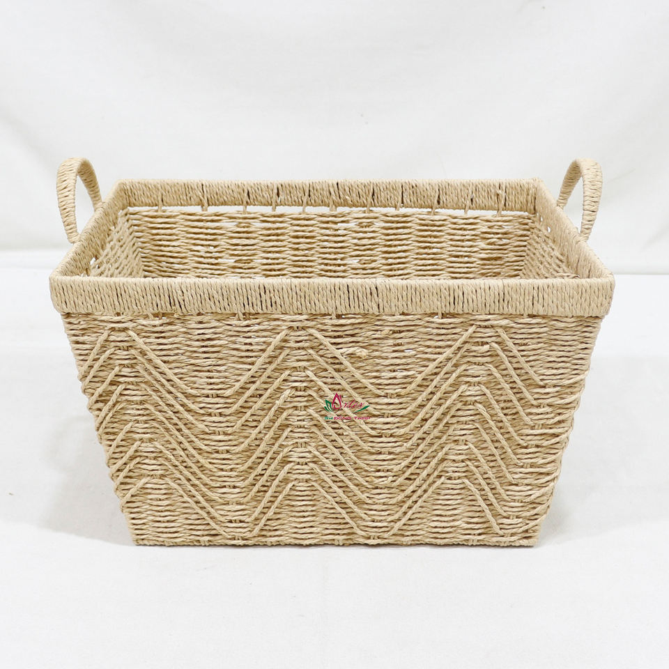 Eco-Friendly Decorative Zigzag Pattern Rectangular Woven Baskets With Handles For Gifts & Home Decor