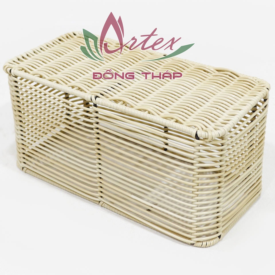 Artex Dong Thap Hand Woven Decorative Bread Basket Small Rectangle Open Type Storage Basket for Home Kitchen Living Room Use