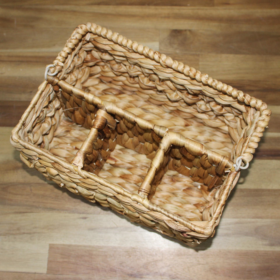 Artex Dong Thap Rustic Eco-Friendly Water Hyacinth Handwoven Rectangular 3-Compartment Storage Organizer