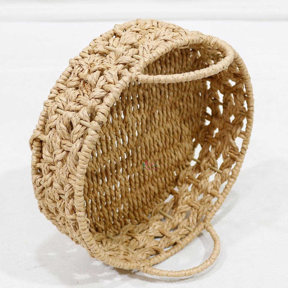 Artex Dong Thap Water Hyacinth Woven Basket, Round Serving Tray with Handles for Home Decor