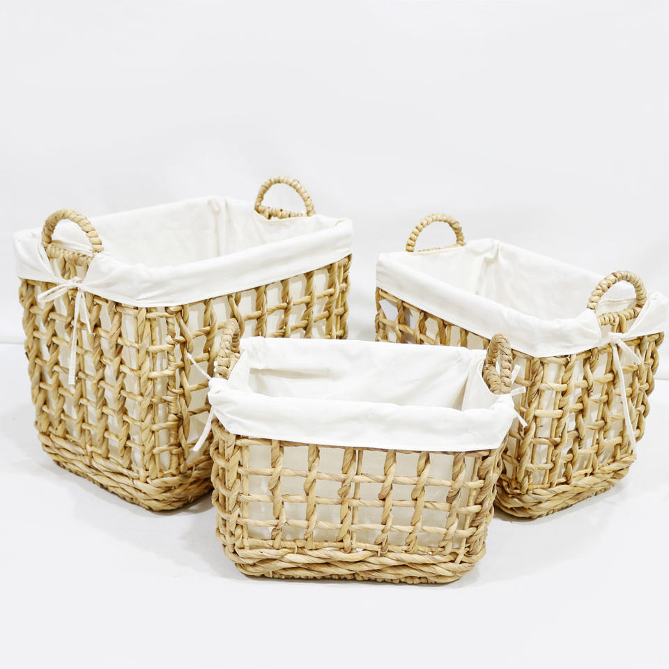 Artex Dong Thap Water Hyacinth Woven Rectangular Storage Basket Set of 3 with Liner