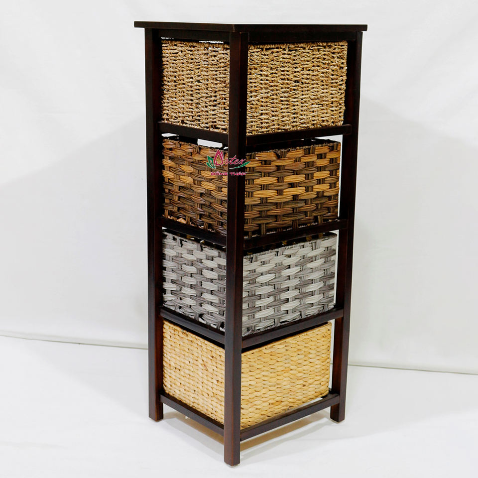 Product name:4 tier wood cabinet in brown color, with 4 baskets