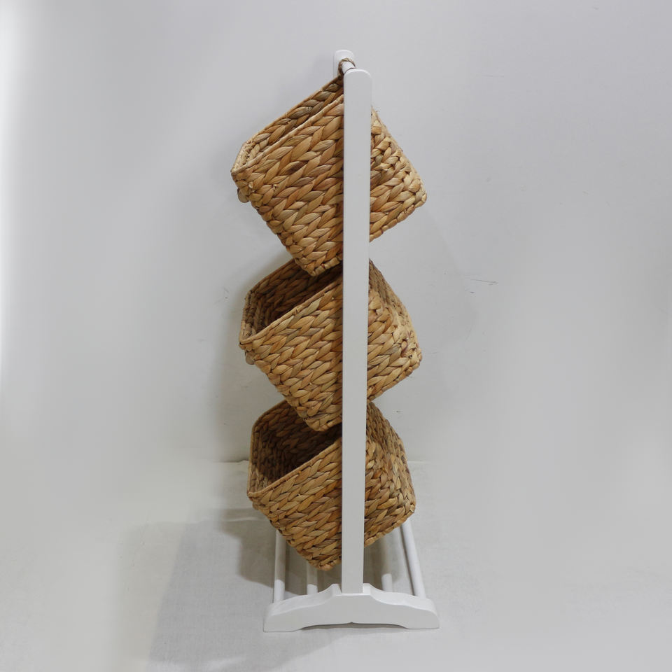 Product name:3 tier wooden rack in white color, with 03 water hyacinth baskets
