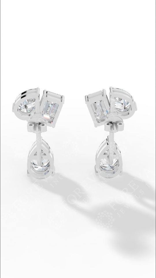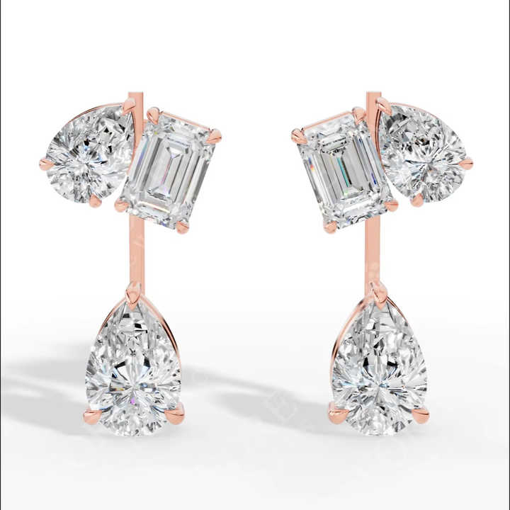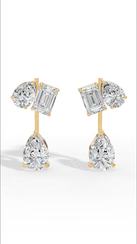 Artful Multi Stone Cascade Duet Earrings With Emerald And Pear Cut Lab Grown Diamonds 10K Gold Luxury Fine Jewelry Supplier