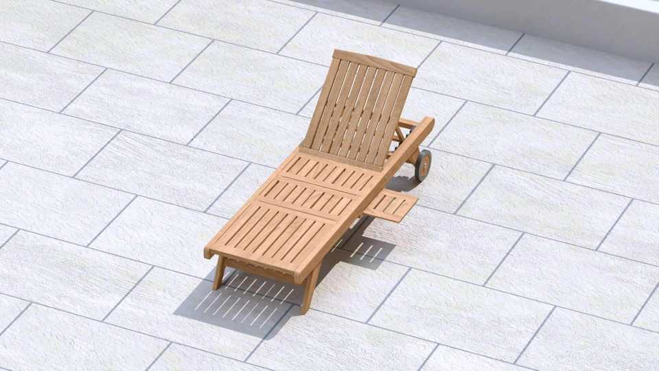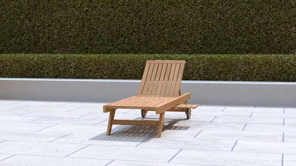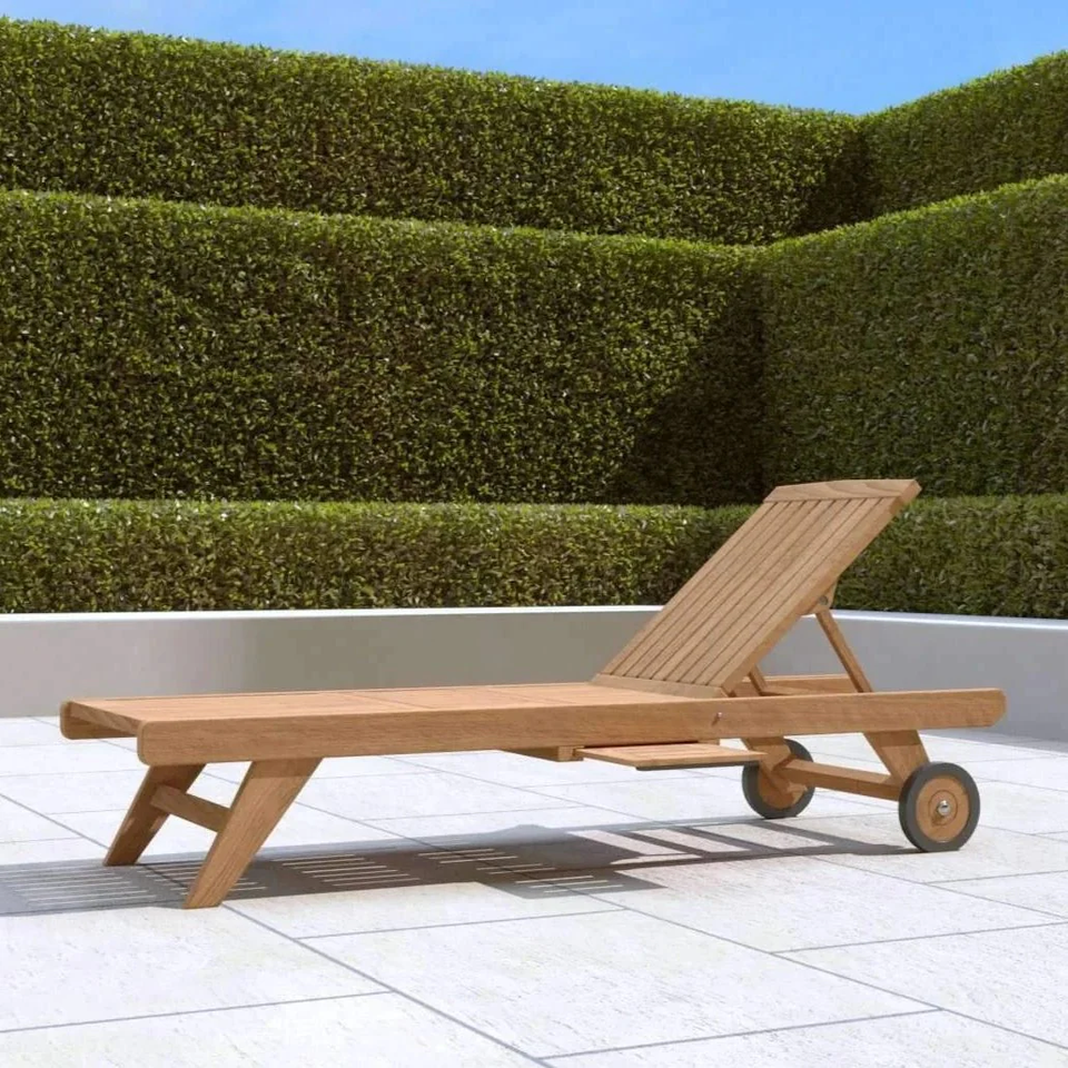 Description:Teak solid wooden Sun Lounger With Wheels natural finish