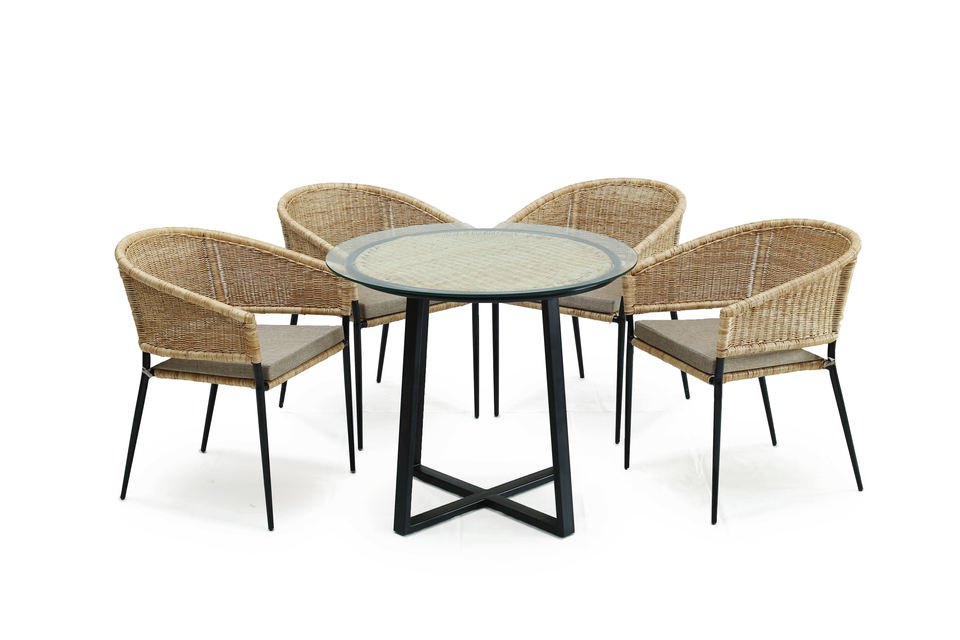 Arthur Traditional Taste Asian Design Rattan Dining Room Furniture Dining Table Set Tempered Glass Top Handmade Indonesia Home