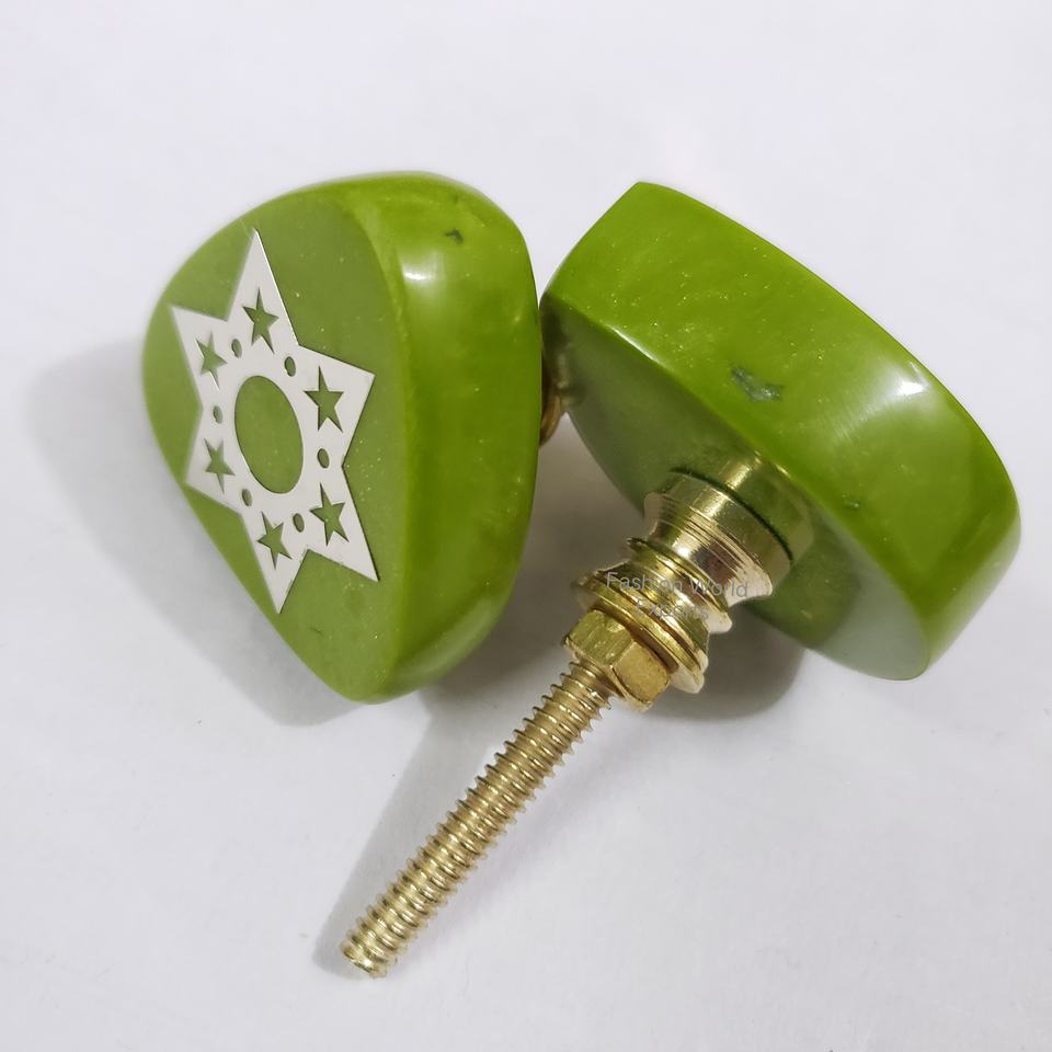 Artichoke Green Opaque Square Resin Door Knobs for Kids Stylish & Safe for Children's Rooms Furniture Hardware Handles & Knobs