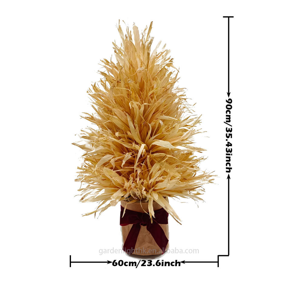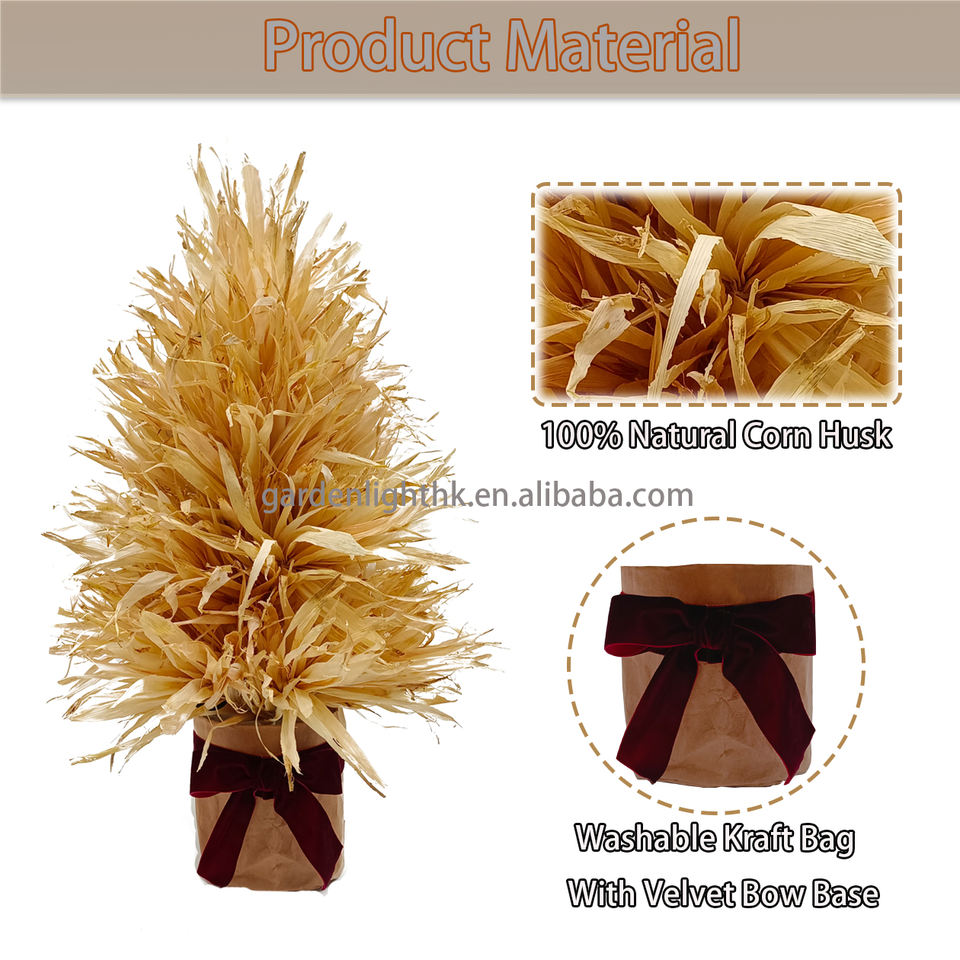 Artificial 3FT Natural Corn Husk Potted Christmas Tree with With Washable Kraft Bag Base for Home Office Holiday Party