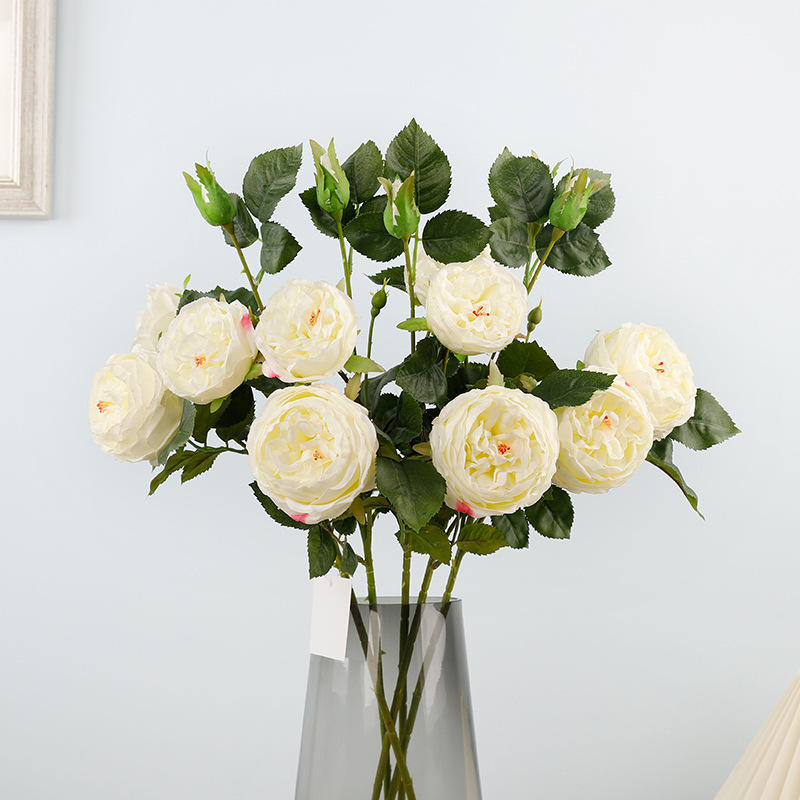 Artificial Austin Roses 3-Head Plastic Silk Flowers High Simulation Wedding Decorative Modern Rose