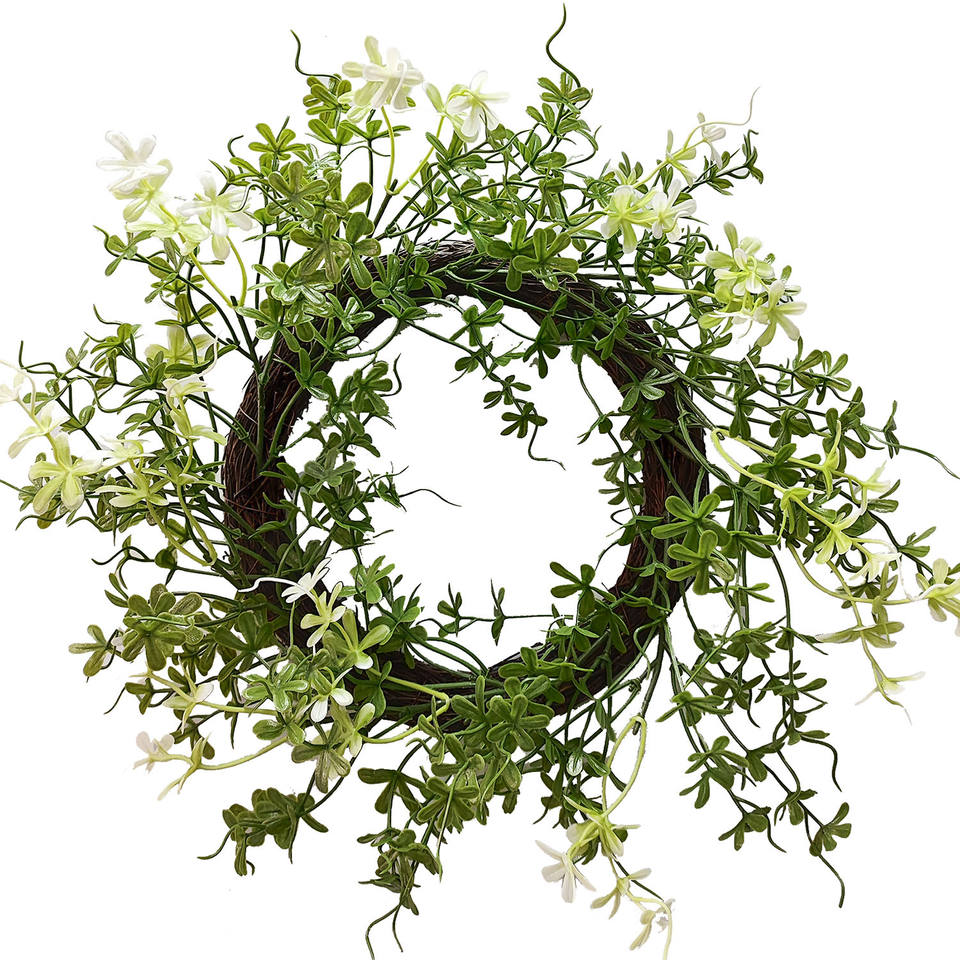 Artificial Dogwood Wreath Spring Summer Outdoor Garden Wreath White Flowers Landscape Plastic Green Plants Crafts Plante