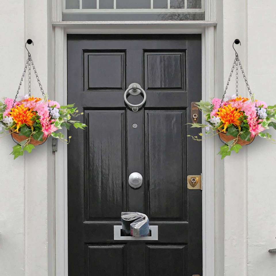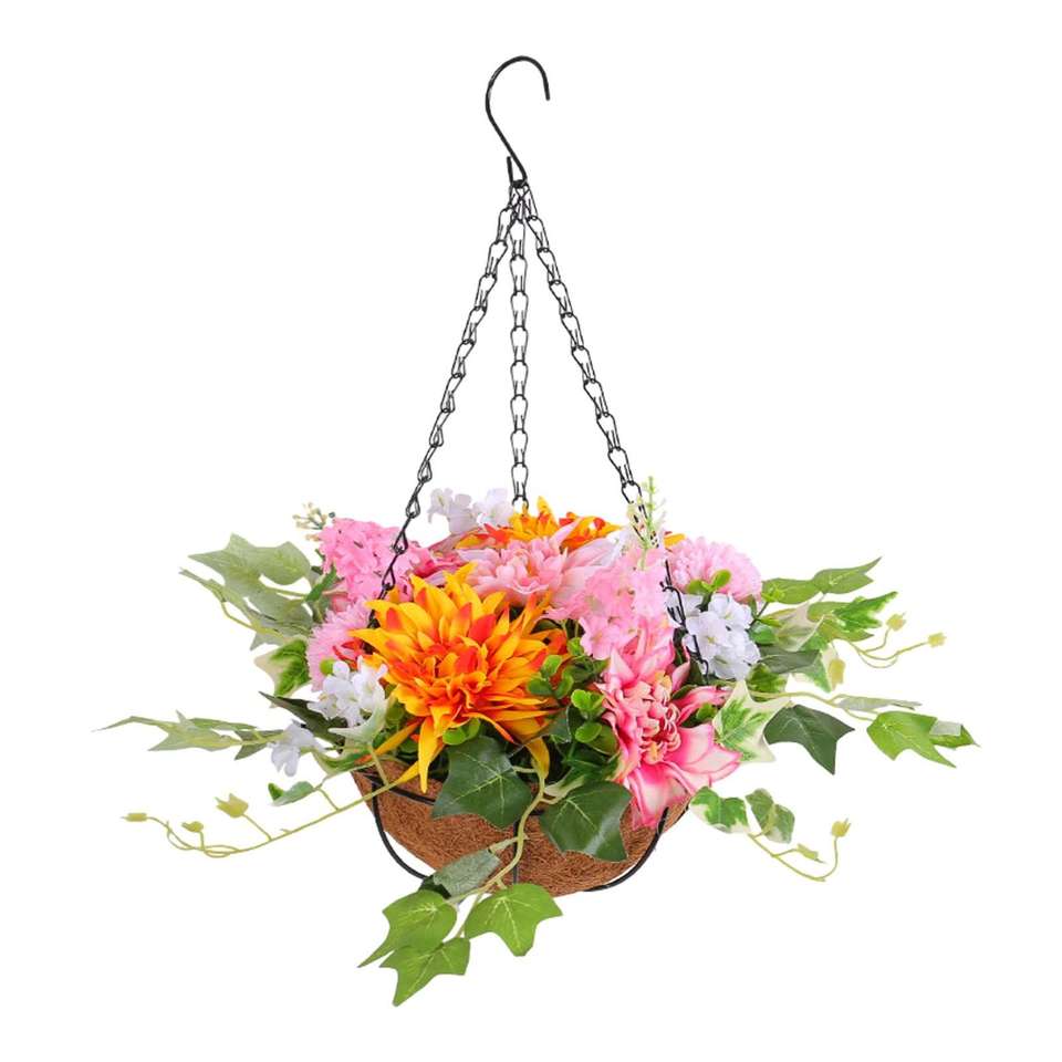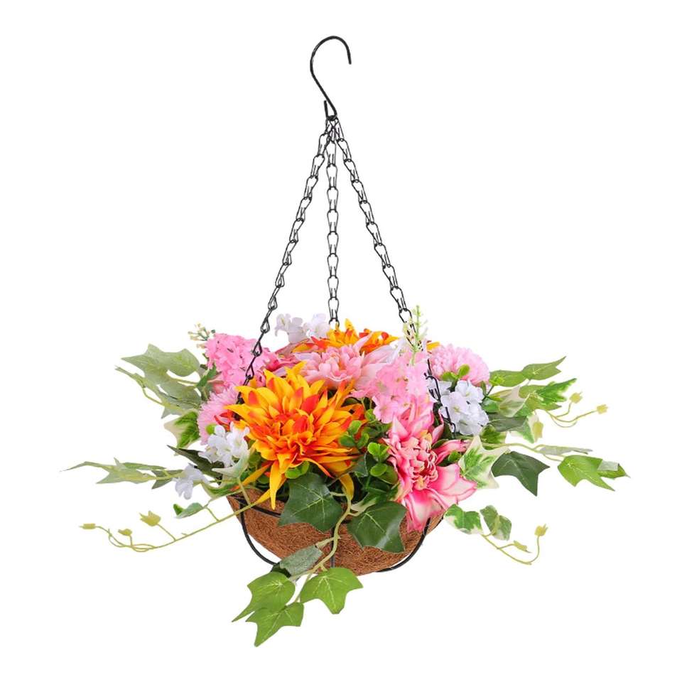 Artificial Hanging Flowers in Coconut Lining Chain Flowerpot for Lawn Hanging Baskets Basket