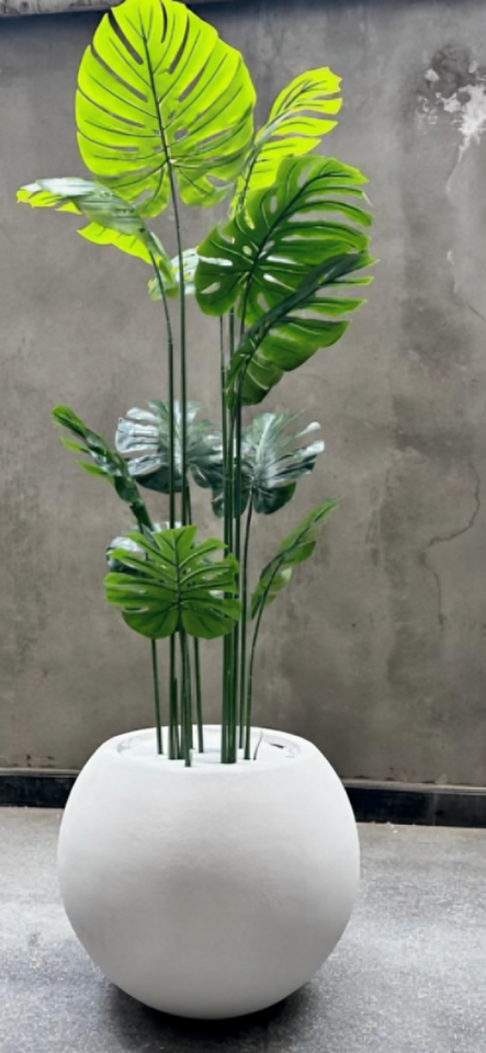 Product Name:Orion white stone planter with Aritificial Monstera plant