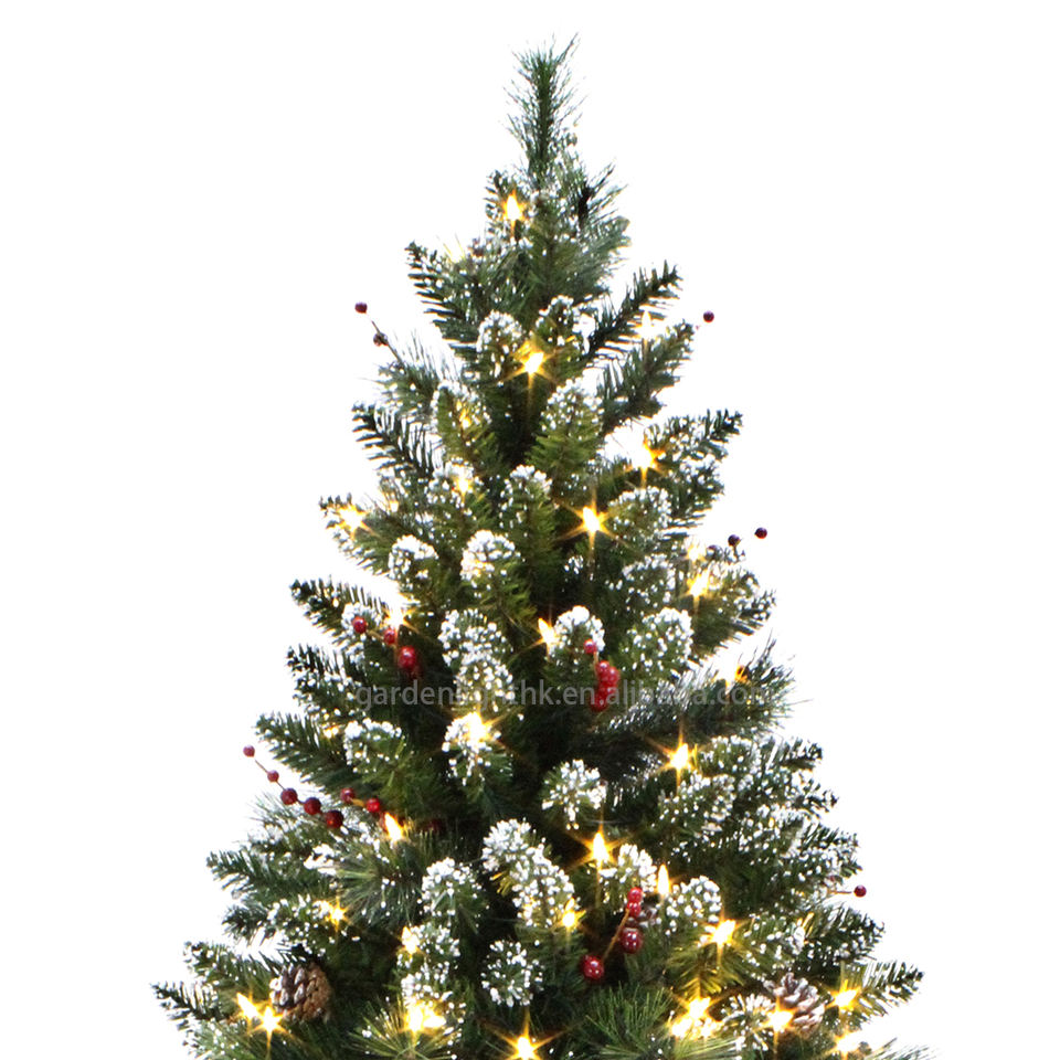 Artificial Pine Needle PVC Mixed 6FT Green Christmas Tree with Pine Cones&Red Berries for Home Hotel Festive Party Decor