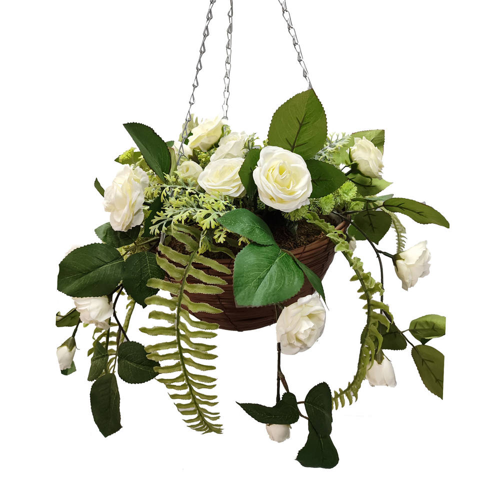 Artificial Rose Hanging Basket Welcome Sign Hanging Wooden Resin Wreath Board Home Decor Indoor Home Crafts Green Plants