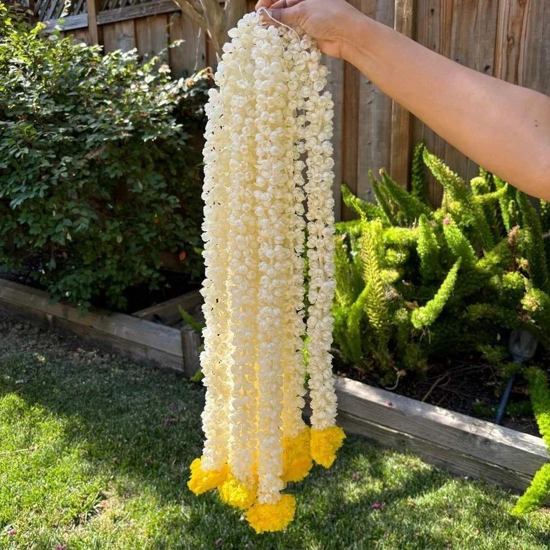 Artificial White Mogra Floral Strings With Marigold Flower Festival Decoration Garlands Wreaths for Wedding Backdrops Hangings