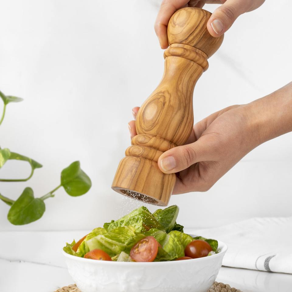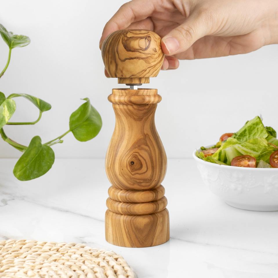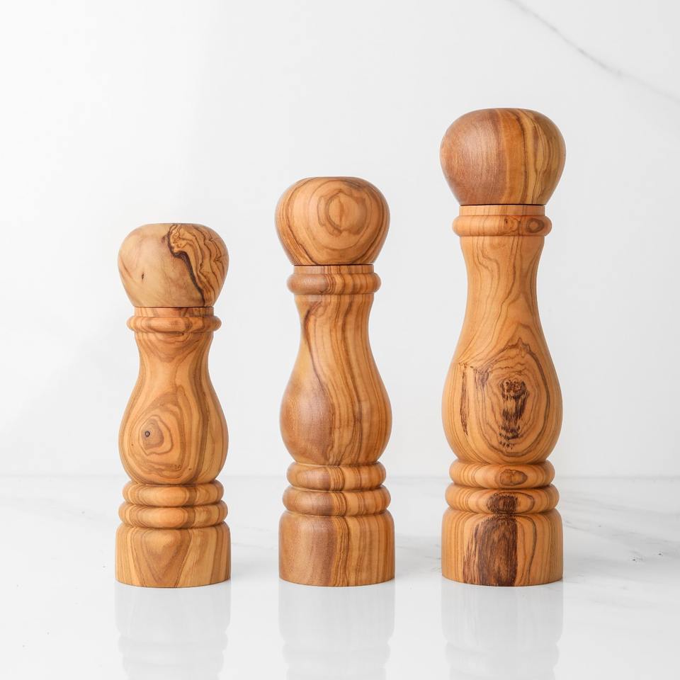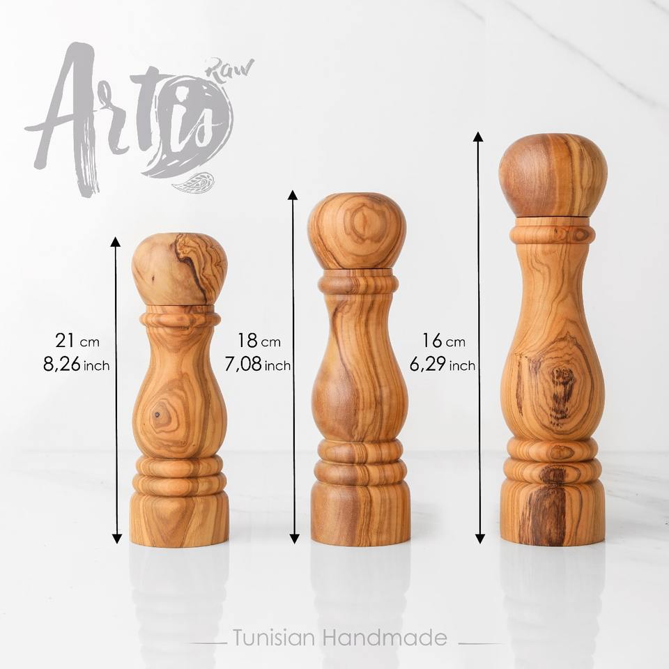 ArtisRaw Handmade Premium Rustic Tunisian Olive Wood Salt & Pepper Grinder Set-Through-Carved Vintage Design