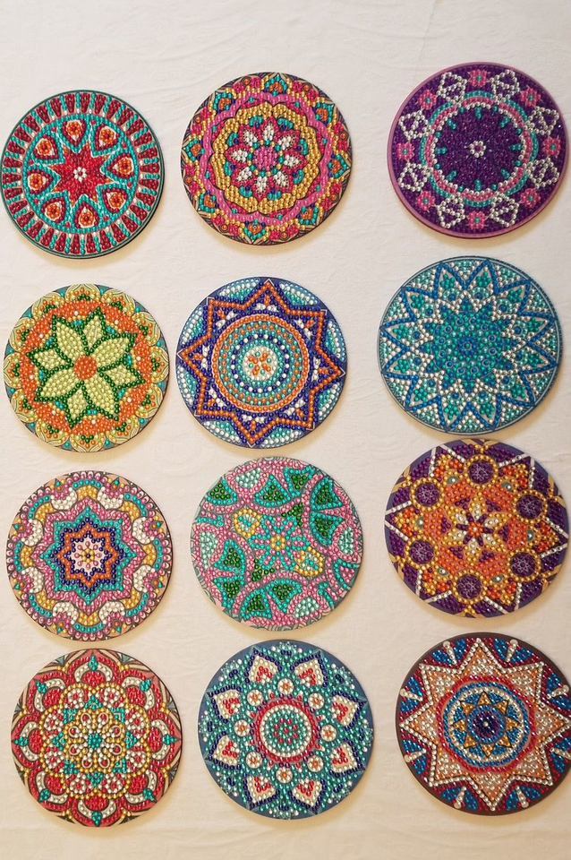 Artisan Beaded Coaster Set Embroidered Detailing with a Boho Touch home bar Vintage inspired beaded drink coaster