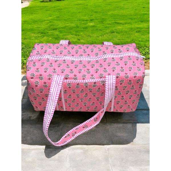 Artisan Blockprinted Cotton Quilted Duffle Bag Handmade Lightweight Durable Spacious Interior Stylish Design Perfect For Travel
