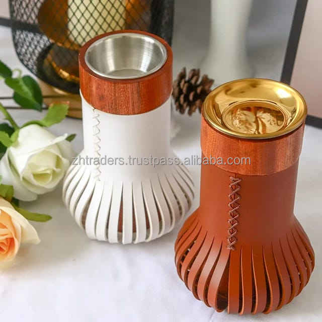 Artisan Collection New Design Wood & PU Leather Bakhoor Burner Handmade Mubkhar for Islamic Home Fragrance and Ramadan Gift