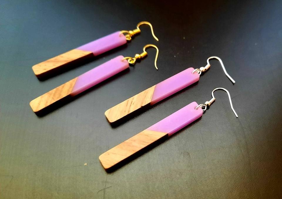 Contemporary Wood and Resin Earrings Bold and Beautiful Handcrafted Love Style Artisan Resin Crafts