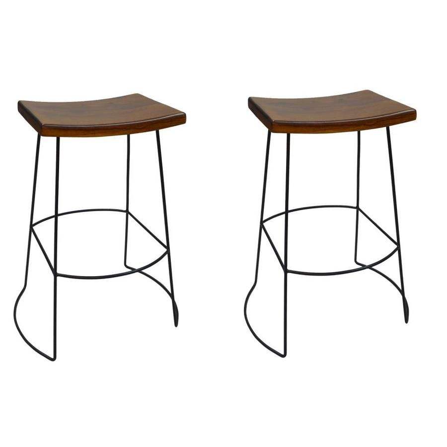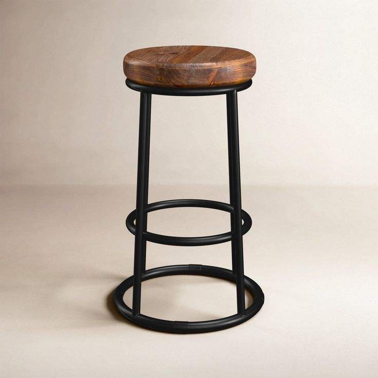 Artisan Crafted Wooden Iron Stool Featuring Rustic Industrial Design For Modern Home Kitchen Bar Seating Decor