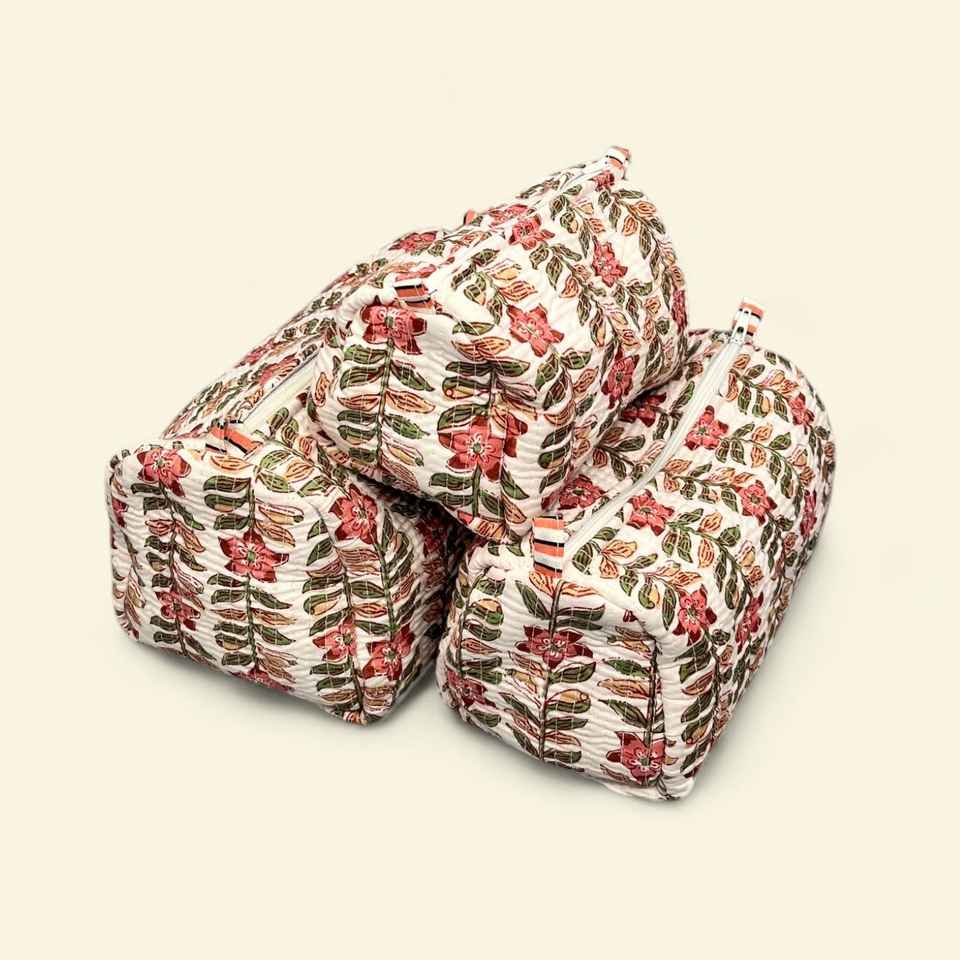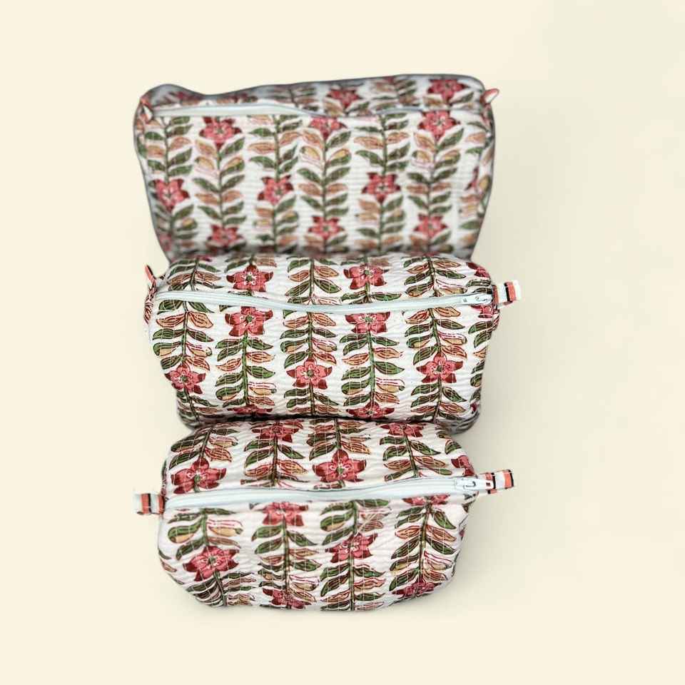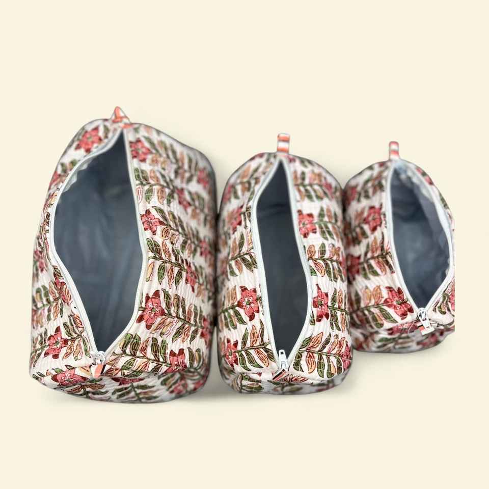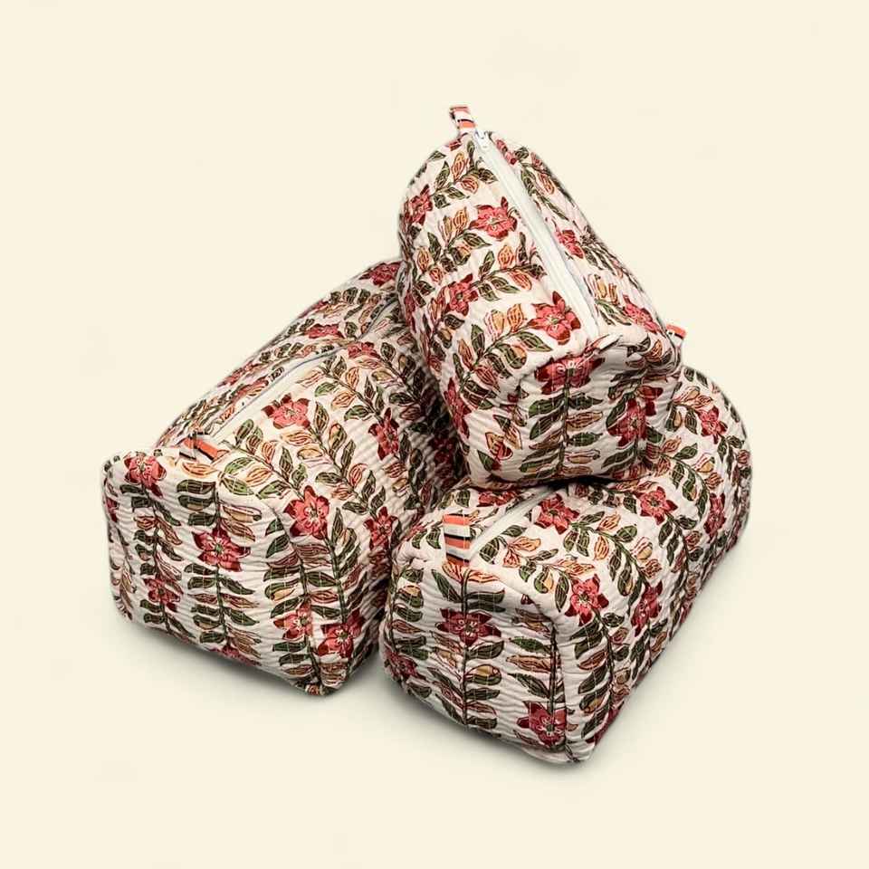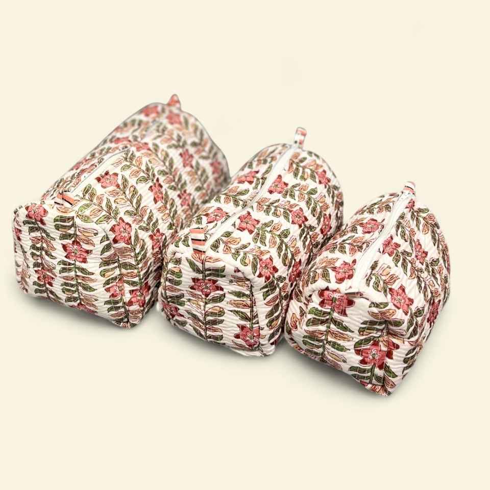 Artisan Hand Block Print Toiletry Bag Set 3Pcs Waterproof Quilted Cotton Makeup Jewellery Pouch Supplier