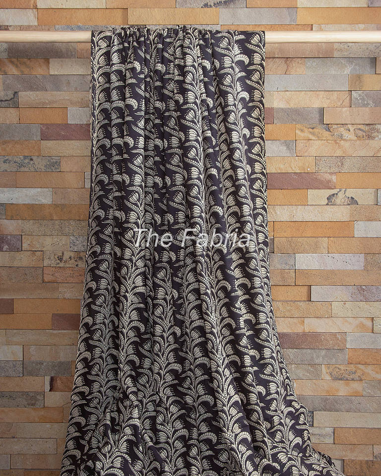 Artisan Hand Block Printed Cotton Fabric Floral Print in Black & White Mix Perfect for Dresses