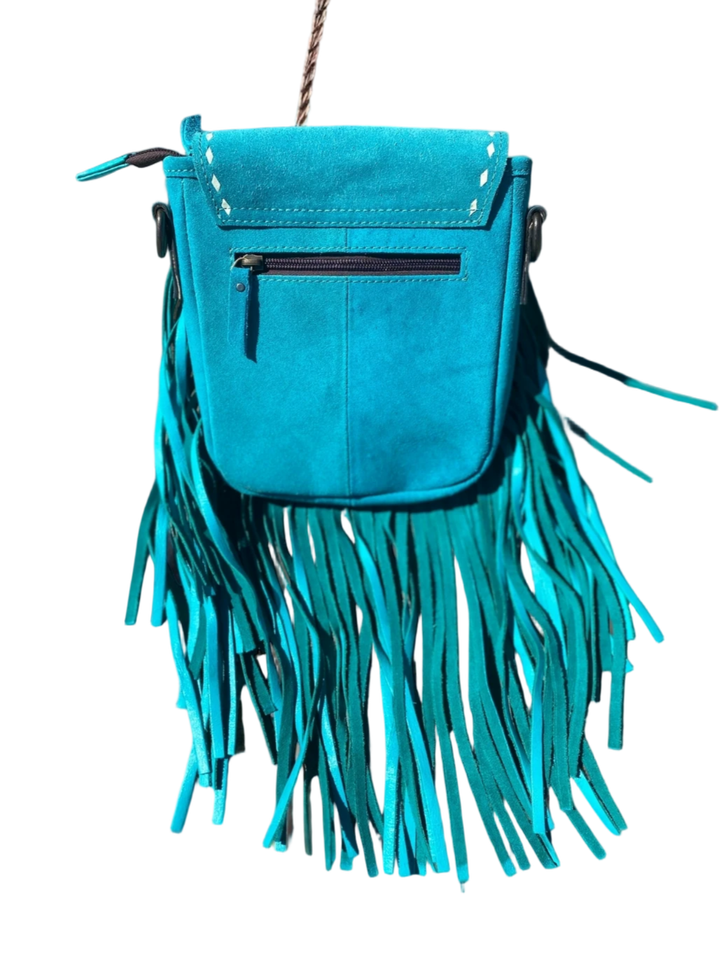 Artisan Handcrafted Leather Messenger Bag with Western Bohemian Boot Stitch Embellishment and Zipper Closure