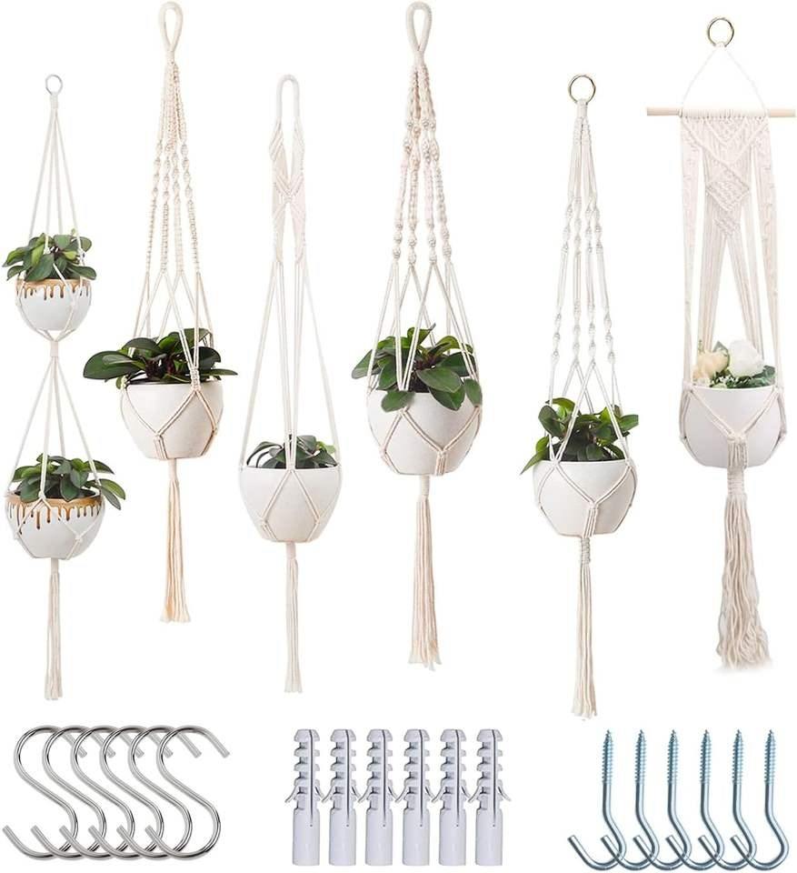 Artisan Handmade Macrame Plant Holder Boho Cotton Woven Hanging Planter for Indoor Outdoor Home Garden Accent