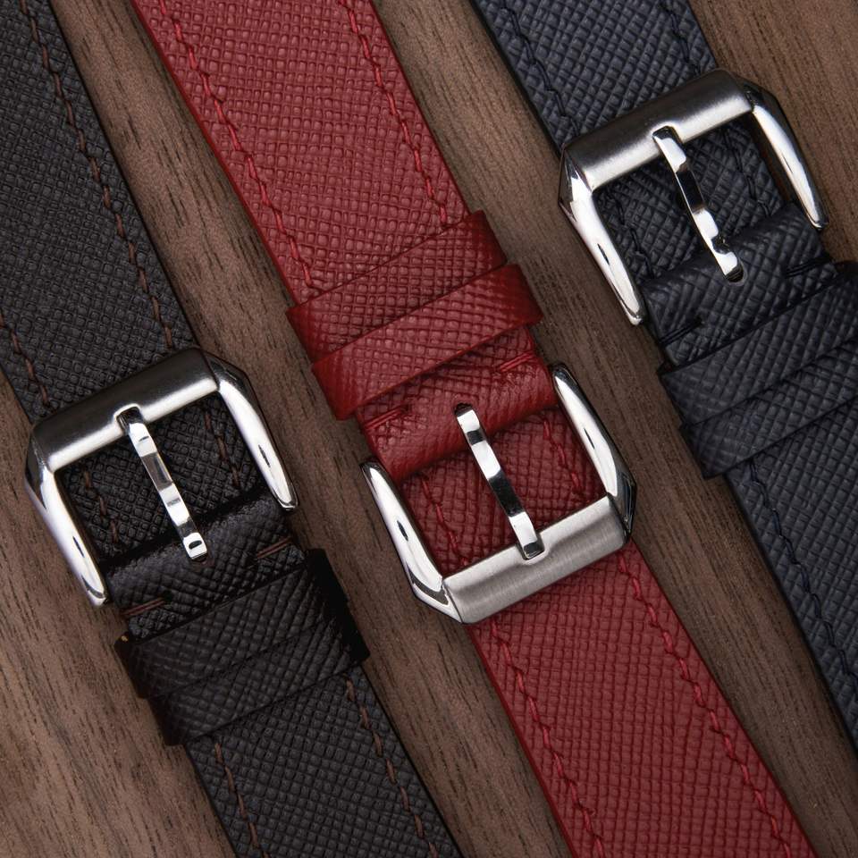 Artisan Made Saffiano Leather Watch Band Hand-stitched for Luxury Brand Watches Elegant Cross-hatch Pattern Replacement Pro