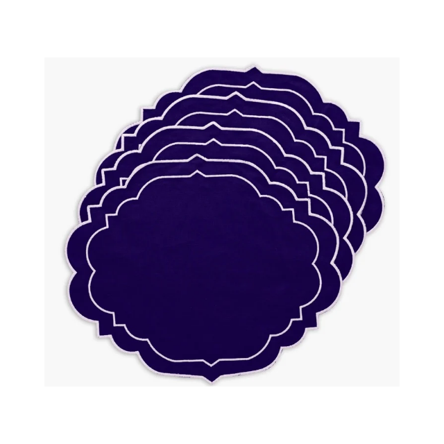 Artisan Pure Cotton Hand Embroidered Blue Spoons 33x47cm 260GSM Canvas Weave Modern Stripe Pigment Dyed Home Dining Table Mat