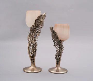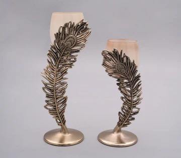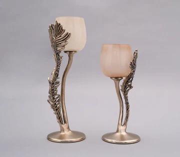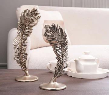 Artisan Vintage Feather Accent Candle Stand Perfect For Adding Elegant Stylish Cozy And Decorative Charm