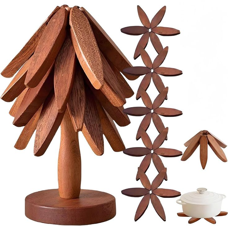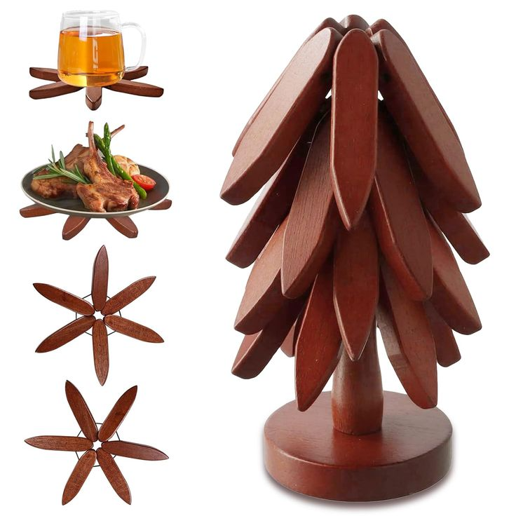 Artisan Wooden Tree Shape Coaster & Trivet Set | Sustainable Wood Hot Pot Stand | Decorative Tableware Set