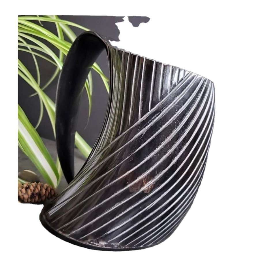 Artisan-made Reusable Contemporary Horn Mug Natural Grain Waves Comfortable Grip Adding Bold Character Any Party Table Setting