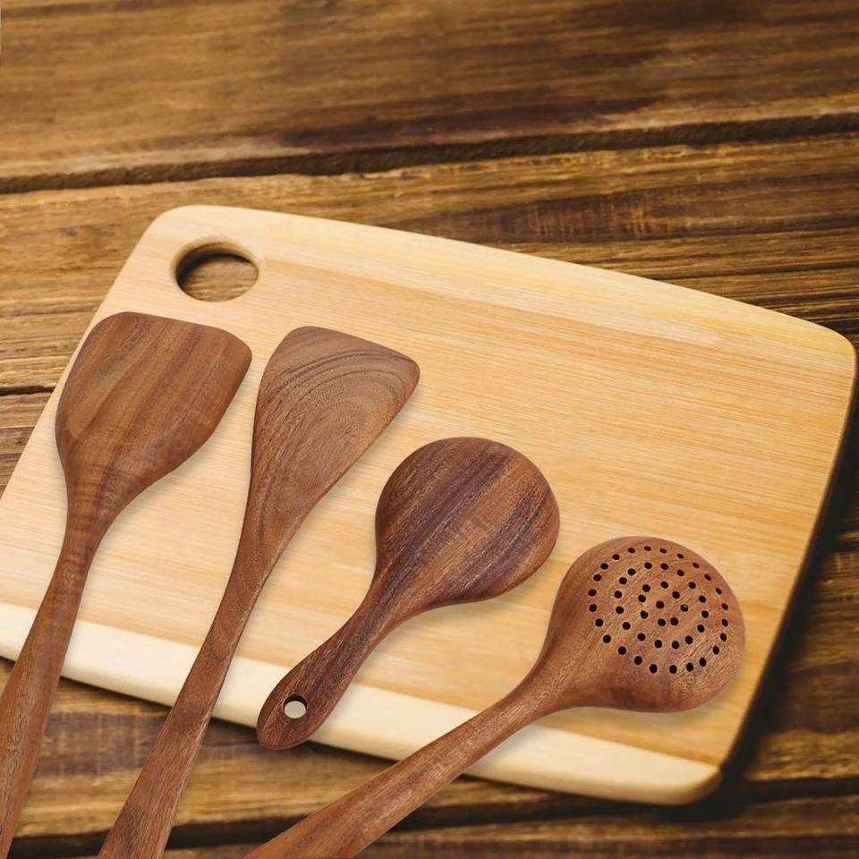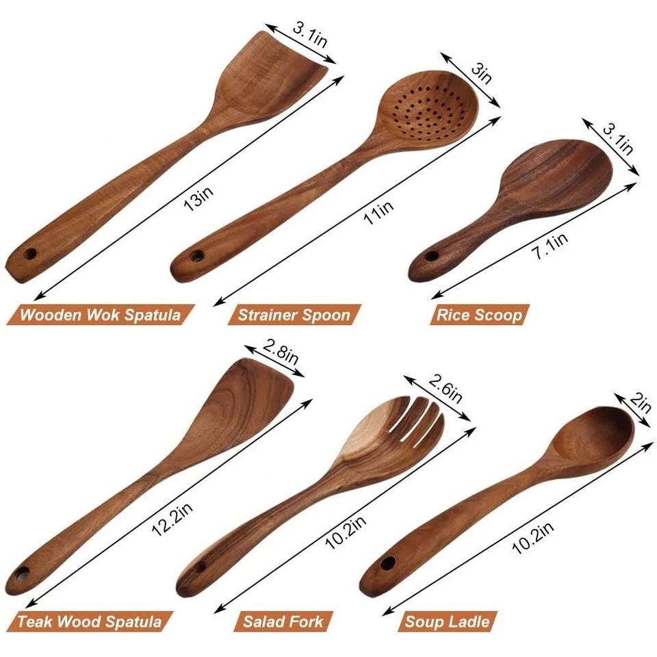 ArtisanVibe Natural Eco-Friendly Teak Wood 6-Piece Utensil Set with Cooking and Salad Spoons Dishwasher & Microwave Safe
