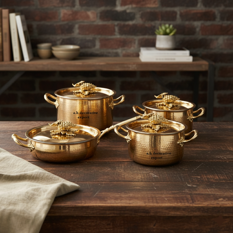 Artisanal Handcrafted Modern Europe Design Eco-Friendly Stainless Steel Casserole Saucepan Food Safe Set Grapes Ornate Handles