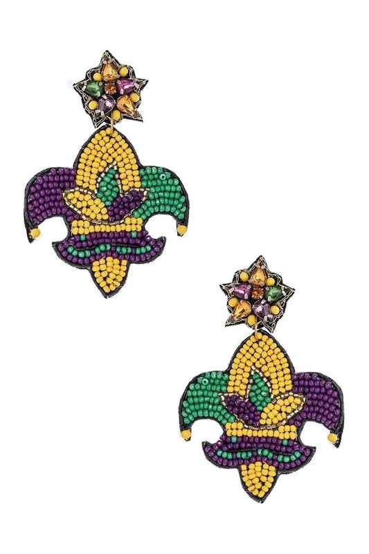 Artisanal Mardi Gras Bead Embroidery Earrings Festive Pearl Drop Seed Bead Parade Collection for Parades and Celebrations