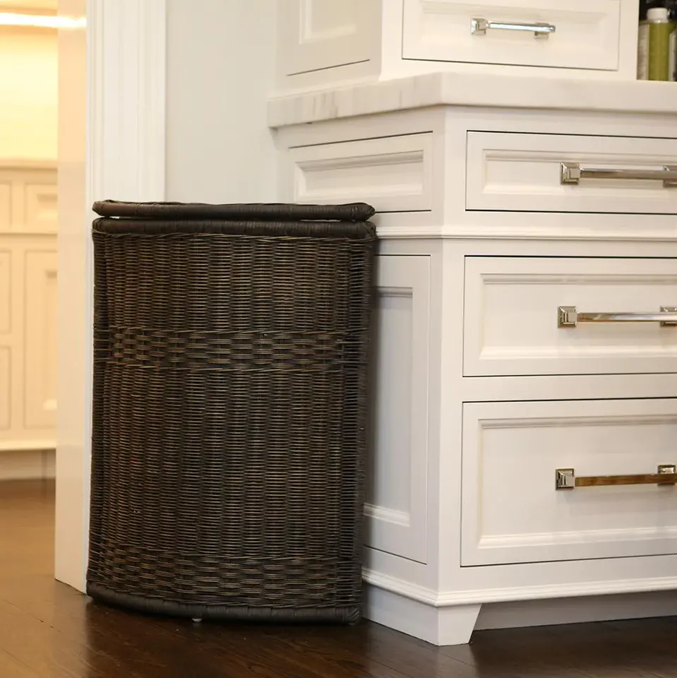 Artisanal Rattan Corner Trash Basket Convenient Grey Rattan Wicker Waste Storage Bin for Home Cleaning