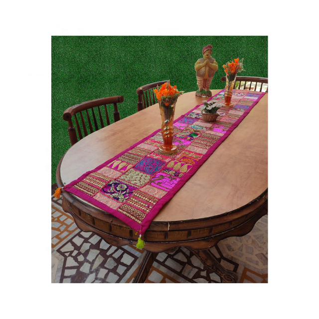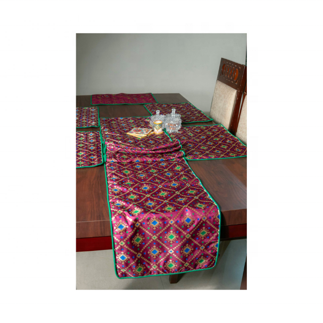 Artisanal Royal Red Jacquard Tasselled GOTS Certified 100% Cotton Embroidered Sustainable 72 Inch 250g Modern Home Table Runner