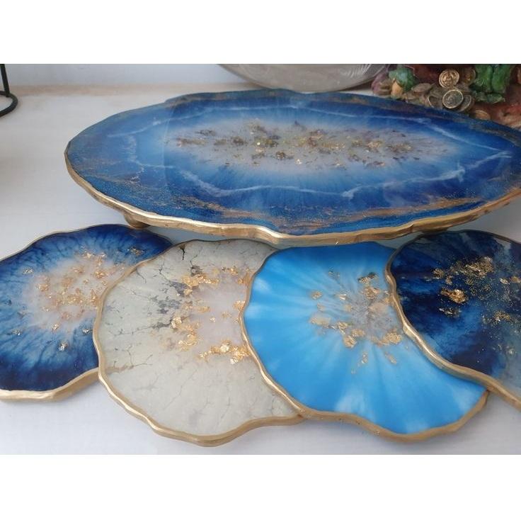 Artisans epoxy coaster set for coffee table home decor epoxy art round drink mat for bar kitchen housewarming gift homebeauty