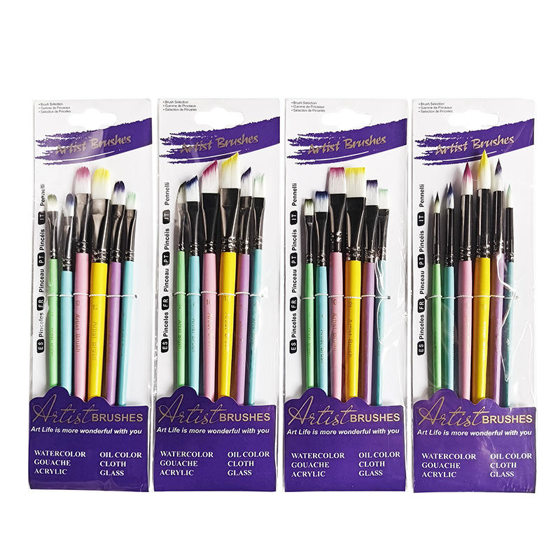 Artist Watercolor Brush Set SHENGCHENG Anti-Rust Ferrule 6Pcs Set Nylon Hair Wooden Handle Comfortable Grip Long-Lasting Paint
