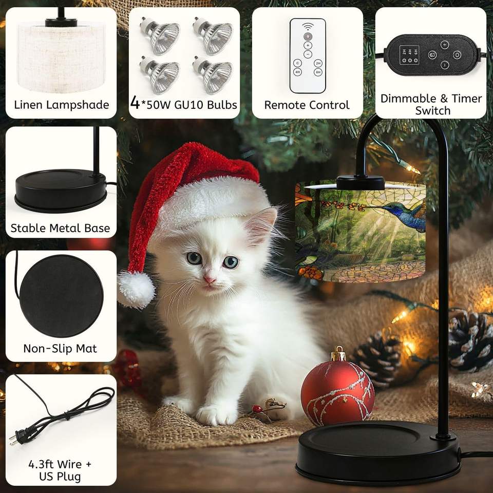 Artistic 4-Bulb Candle Warmer Lamp Stained Glass Design Heliconia Flowers Hummingbirds Dimmable Electric Home Decor AU Plug