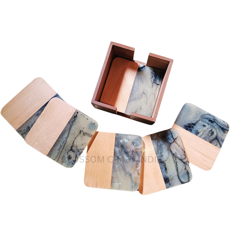 Artistic Acacia Wood Coasters Epoxy Resin Drink Table Decor Holder Unique Home Decoration Craft for Coffee & Tea Cups