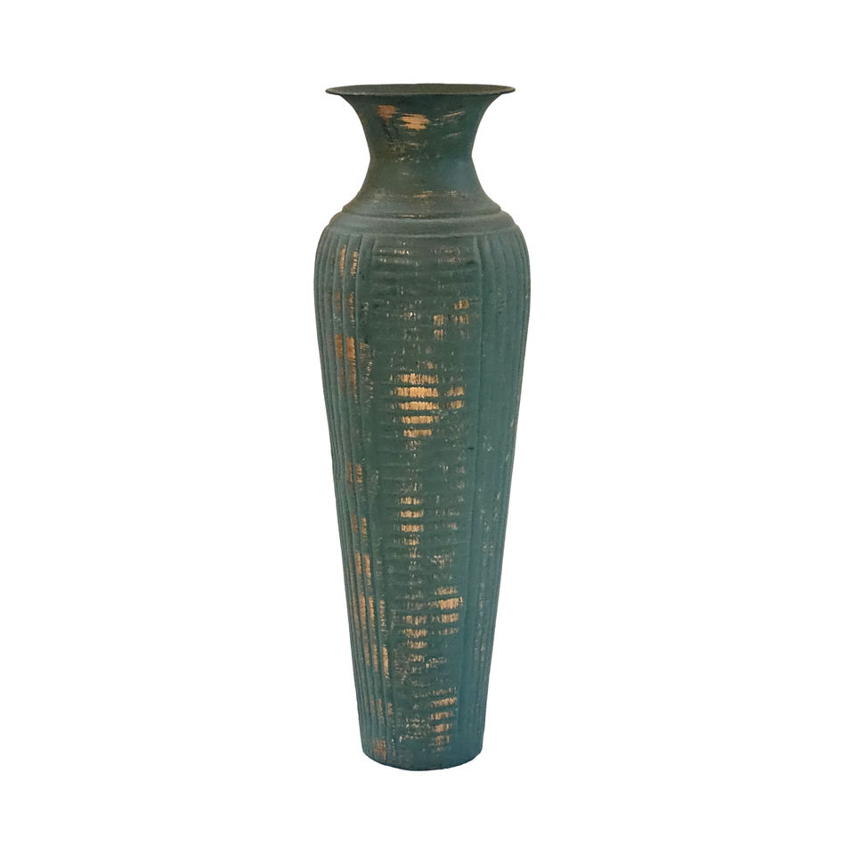 Artistic Antique Style Metal Flower Vase with Intricate Embossed Design and Tall Decorative Home Decor Accent