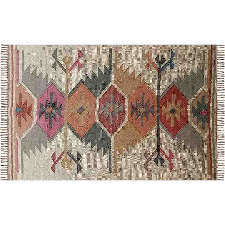 Artistic Area Floor Mat Hand Woven Jute-Woolen Kilim Rugs for Living Room Bedroom & Study