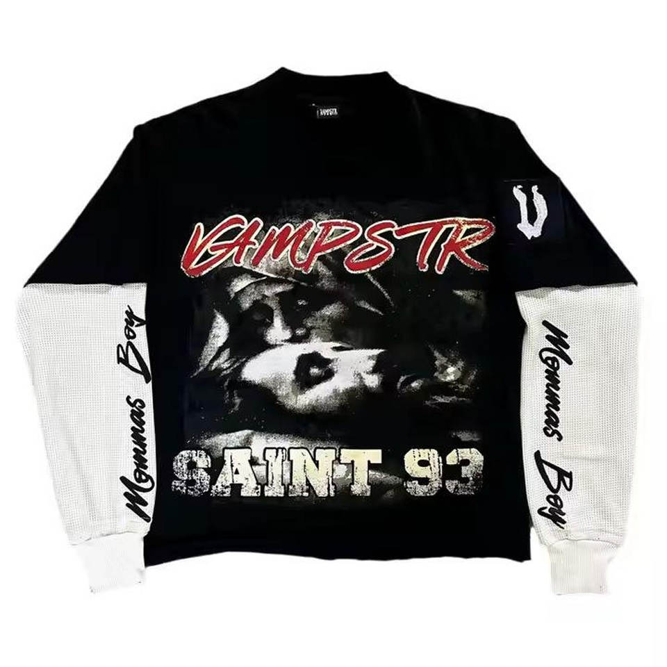 Artistic Digital Print On Breathable Fabric Double Sleeve T Shirt Raised Puff Ink Design Casual Streetwear Double Sleeve T Shirt