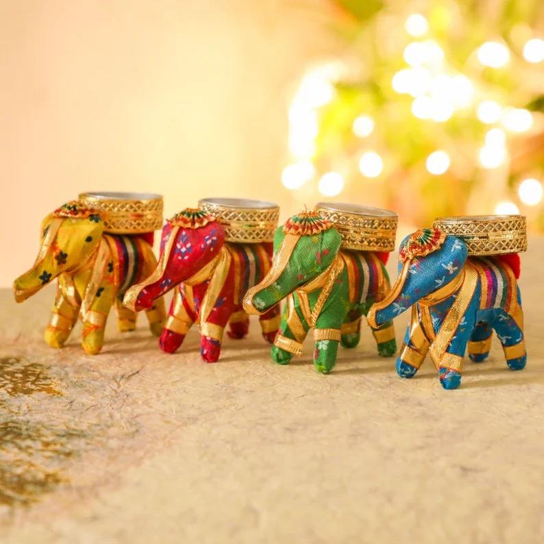 Artistic Elephant Rangoli Set Housewarming Favor Indian Wedding Entryway Home Decoration Diwali Tealight Candle Holder